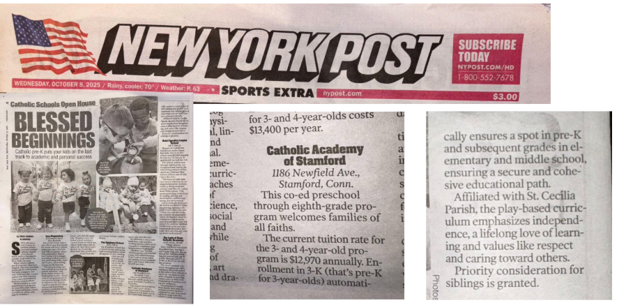 Since August 2020, CAS has been making headlines! Check out some of our recent media coverage from the last five plus years and see how our community is making an impact. Most recently, CAS was featured in the October 8, 2025 edition of the New York Post (page 42) and in the September issue of the Fairfield County Catholic (pages 8, 21 & 23).